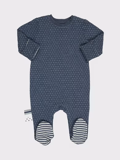 The dotted sleep romper by OrganicEra convinces with its high-quality material made of organic cotton, which nestles gently against the body and thus leaves a nice feeling at night. The high elasticity also contributes to a peaceful sleep, because the child can move freely in the one-piece suit – even on restless nights. In the cooler season, the sleeve ends can be turned into mittens for warmth.