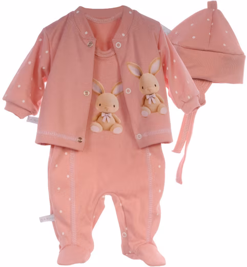 Romper Baby Suit First Set in Powder Pink with Bunnies