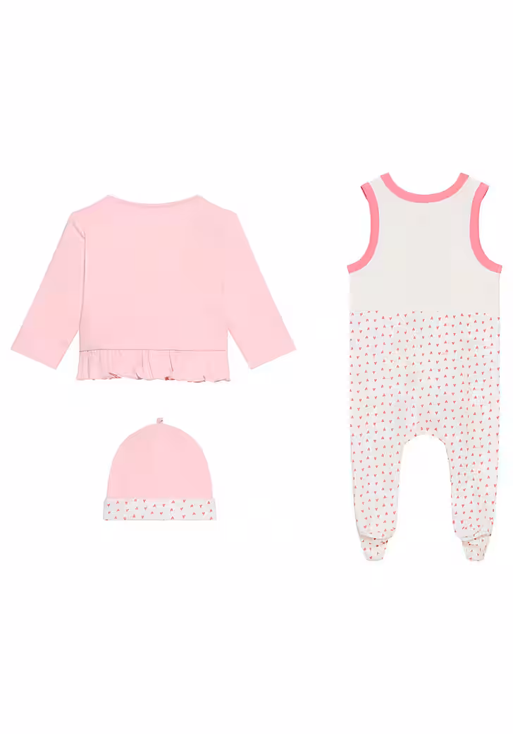 This Set for girls »3 pieces baby set, for little girls« from KIDSWORLD is a feel-good combination for the little ones. It consists of 3 basic parts — rompers, jackets and hat —, which are coordinated with each other and create a great overall picture. The print and pattern ensure a particularly beautiful appearance. The cotton is light, quick-drying and temperature regulating. It ensures a comfortable fit.