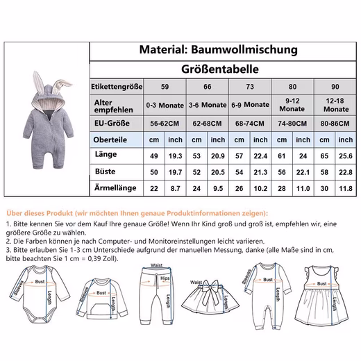 Hood design:Â The cute hood protects your baby’s head from the wind and cold, protects the head and keeps it warm, making it cuter, and the zipper design allows you to change diapers easily.