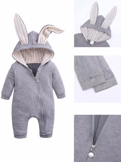 Cute Design:Â Stylish hooded baby jumpsuit, with two cute 3D bunny ear designs, full of three-dimensionality, looks more cute and fashionable, makes your baby cute and attractive, and makes Easter brighter.