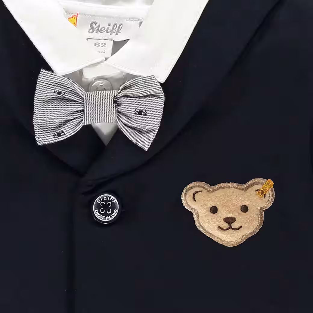 It doesn’t get any more classy than this! This super cute blazer-style romper is a must-have for all little partygoers. The blazer features a shirt-style silhouette and a detachable bow tie. The openings at the front and leg make it much easier to put on and take off. Made of high-quality sweat fabric, the blazer is sure to be the center of attention at any party.