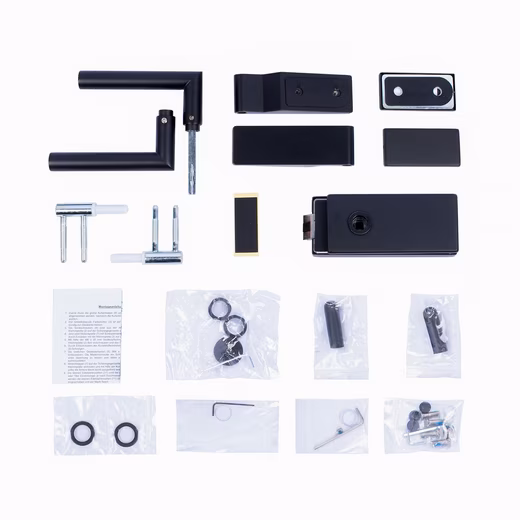 Scope of Delivery Glass door leaf, hardware set incl. fastening material, assembly instructions
