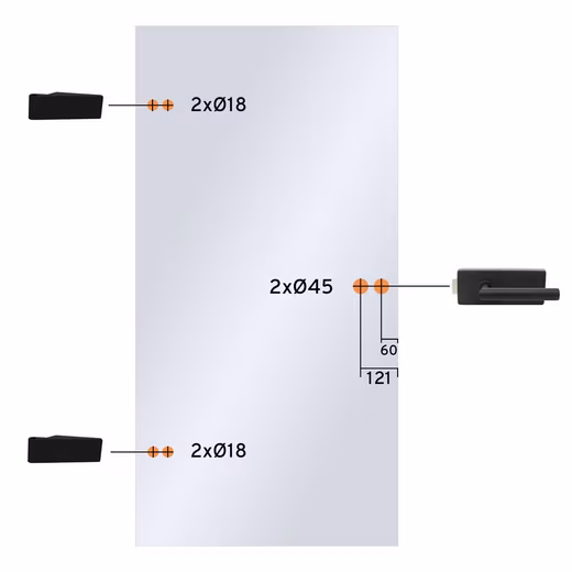 • Frameless glass door incl. hardware set