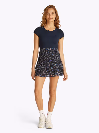 The short “TJW RUCHED AOP SKIRT” from Tommy Jeans will keep you casually dressed. The flared cut and high rise accentuate your waist and create a very feminine look.