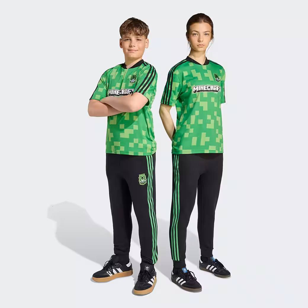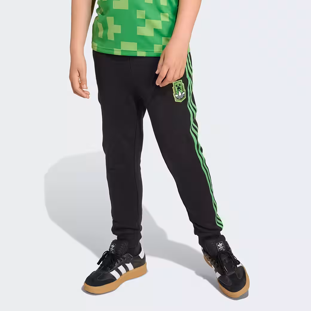 Create your world. Create your style. These pants for children and teens are part of the collaboration between adidas Originals and Minecraft and ensure comfort when you play or meet up with friends. The French Terry feels super soft and comfortable on the skin. A Minecraft Creeper looks out of the adidas Trefoil and is ready to accompany you on your adventure.
