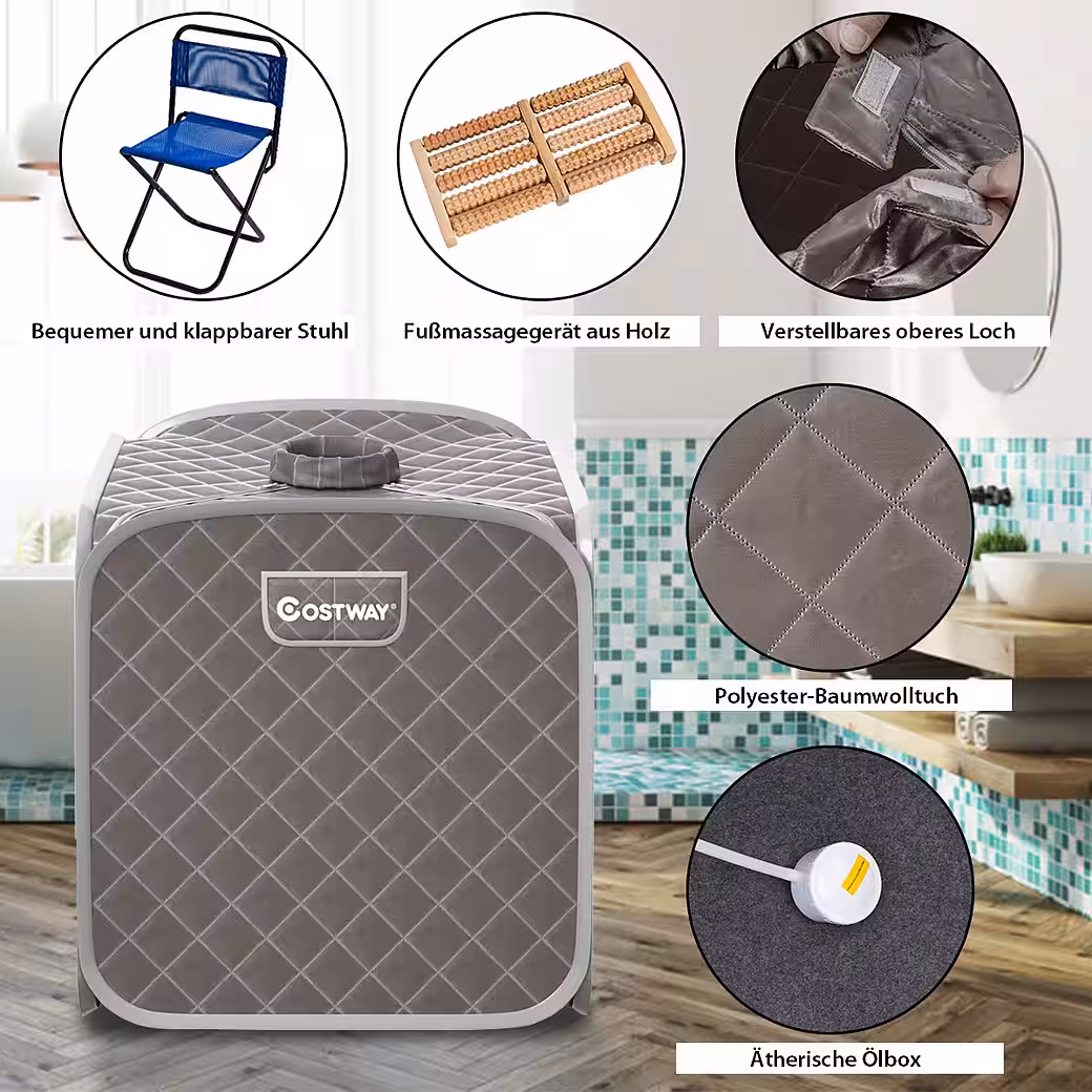 Is work stress making you tired? Now is the time to take care of your mental and physical health. We present our portable steam sauna, designed to effectively reduce stress and promote detoxification. It offers nine adjustable temperature settings to suit different needs. Plus, it comes with a remote control, allowing you to adjust the settings without leaving the sauna. We’ve also included a foot massage roller to help you save on expensive massages.