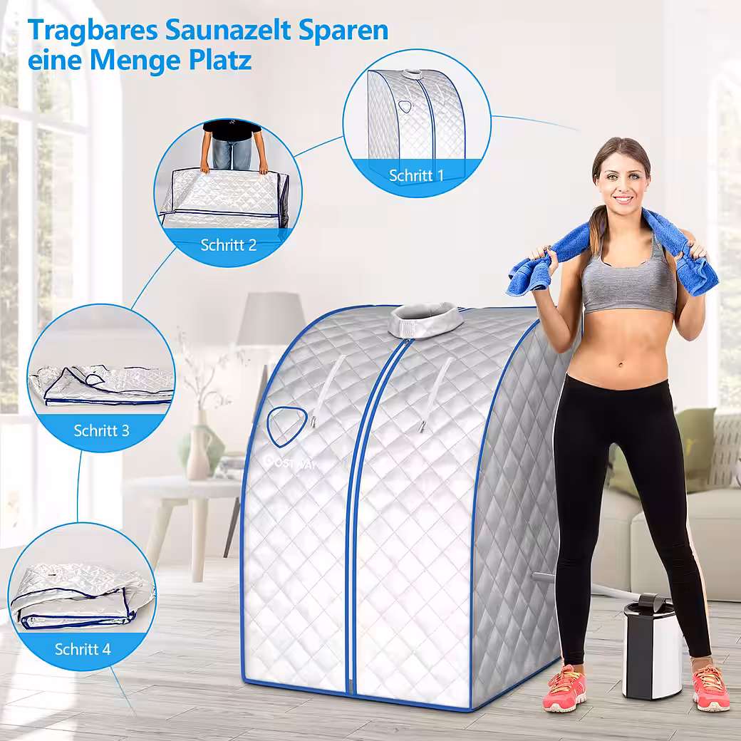 • The steam sauna tent can be set up in just a few steps. And the home sauna is portable.