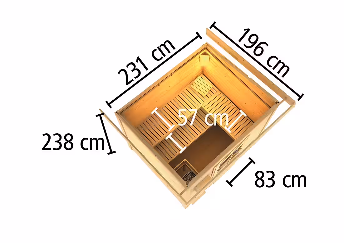 - Interior width of sauna: 219 cm