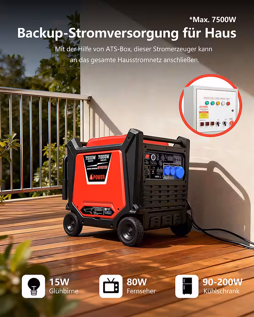 A-iPower 7.5kW Gasoline Generator, Emergency Power Supply, 4-Stroke Engine with ATS Interface, Inverter Generator,