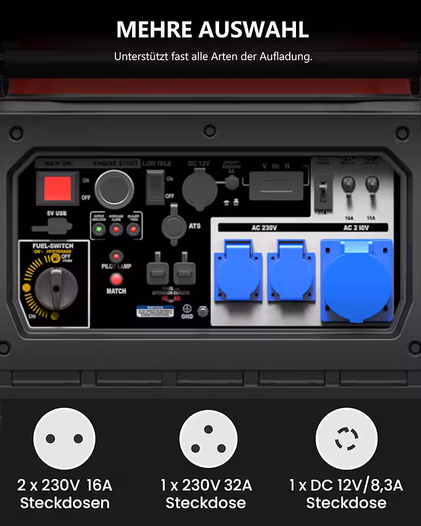 The generator ensures a reliable power supply for your home. Compatible with an Automatic Transfer Switch (ATS), it ensures that your home continues to function normally even during unexpected power outages. You don’t have to worry about insufficient power outlets – it integrates seamlessly into your home network.