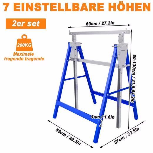 - The sawhorse is constructed with a high-quality steel frame and has a maximum load capacity of 300 kg.