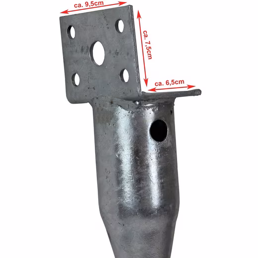 Screw-in ground sleeve, 2x L-profile ground sleeve for screwing in, 48.5 cm length, 9×9 mm square timbers For dimensions from tip to base of the tab (HxWxD): approx. 41x7x7cm – Tab dimensions (LxWxH): approx. 9.5×6.5×7.5cm, for twisting in, (2-piece set)