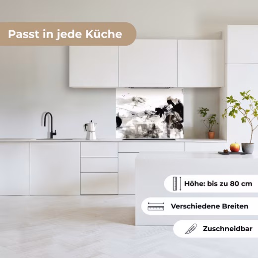 Be the first to review “Self-adhesive kitchen backsplash – Paint – Black and White – Art (1-piece), splash guard, kitchen, back panel, kitchen wall, kitchen front, 80×60 cm”