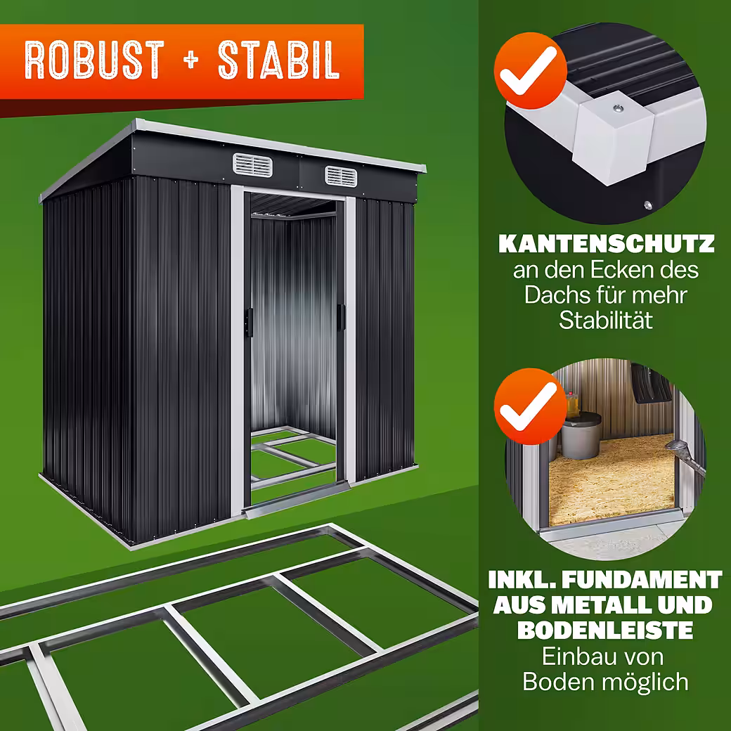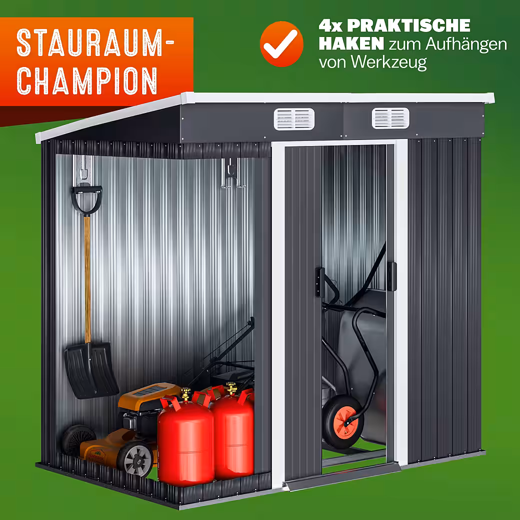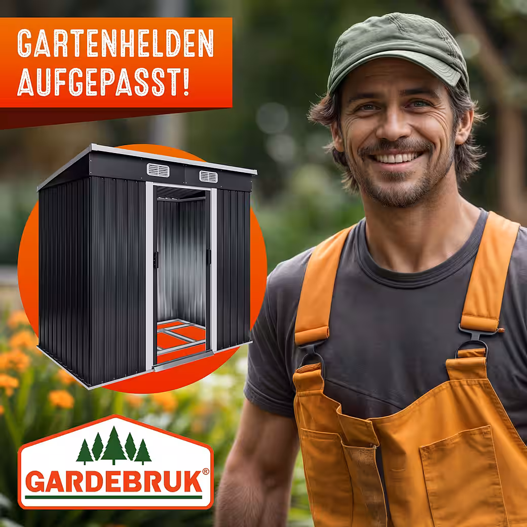 - METAL SHELTER: This GARDEBRUK® garden shed with a pent roof is ideal for anyone who wants to store all their garden tools and equipment safely and dryly in one place.