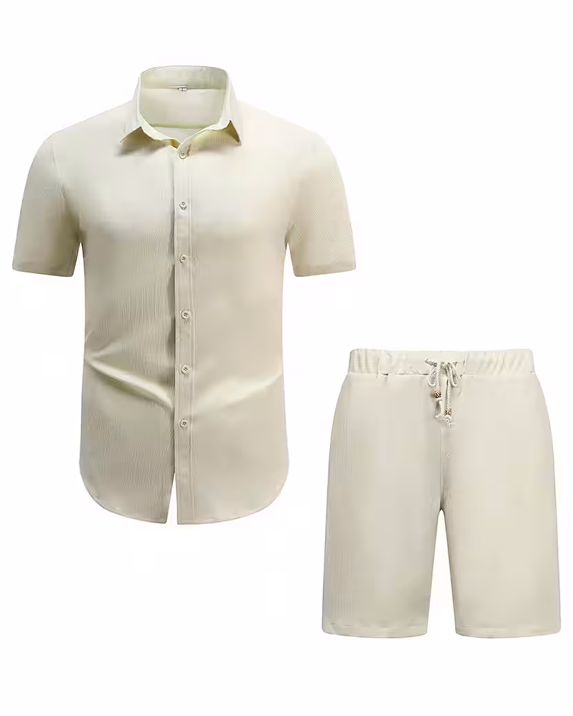 Immerse yourself in summery lightness with this classic men’s leisure set that combines stylish elegance and functional design.