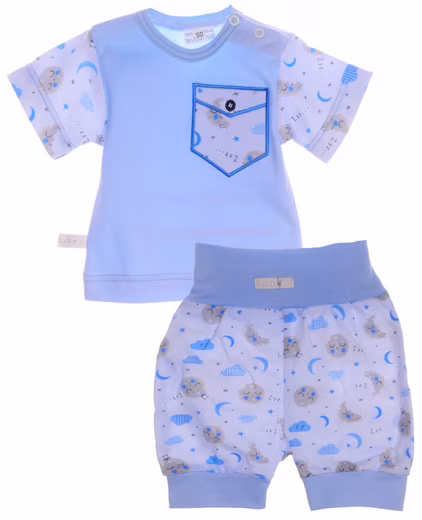 - Two-piece baby set with T-shirt and shorts in cloud design