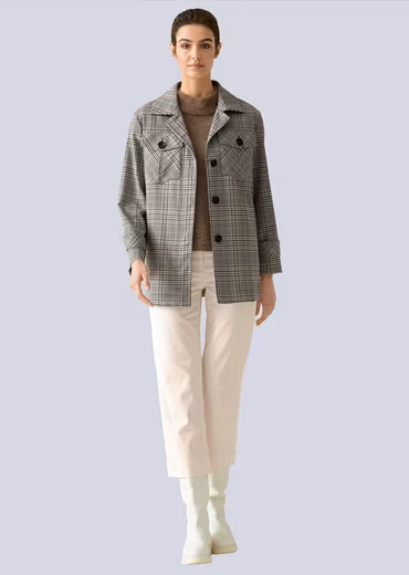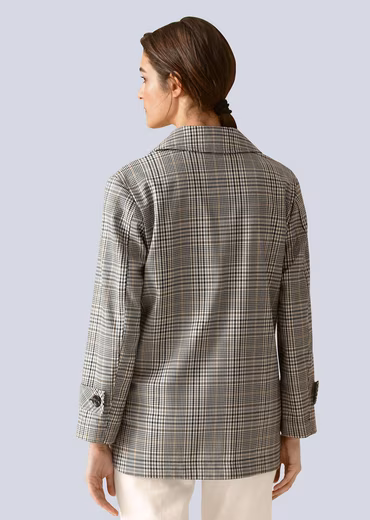 Discover your very own favorite – like this jersey blazer from Alba Moda. The checked pattern is a real highlight. It features a shirt collar. Thanks to its figure-hugging cut, it’s particularly flattering. Long sleeves with a tab. Plenty of room thanks to patch pockets. Easy-care material was used. And we have a style tip for you: When choosing a bag and shoes to match your outfit, they don’t necessarily have to be the same color. What’s important is that the style fits and the colors harmonize. It’s also nice if a detail or pattern from the clothing is reflected in the accessories. Our online shop offers a huge selection of products – have the jersey blazer from Alba Moda delivered to your door!