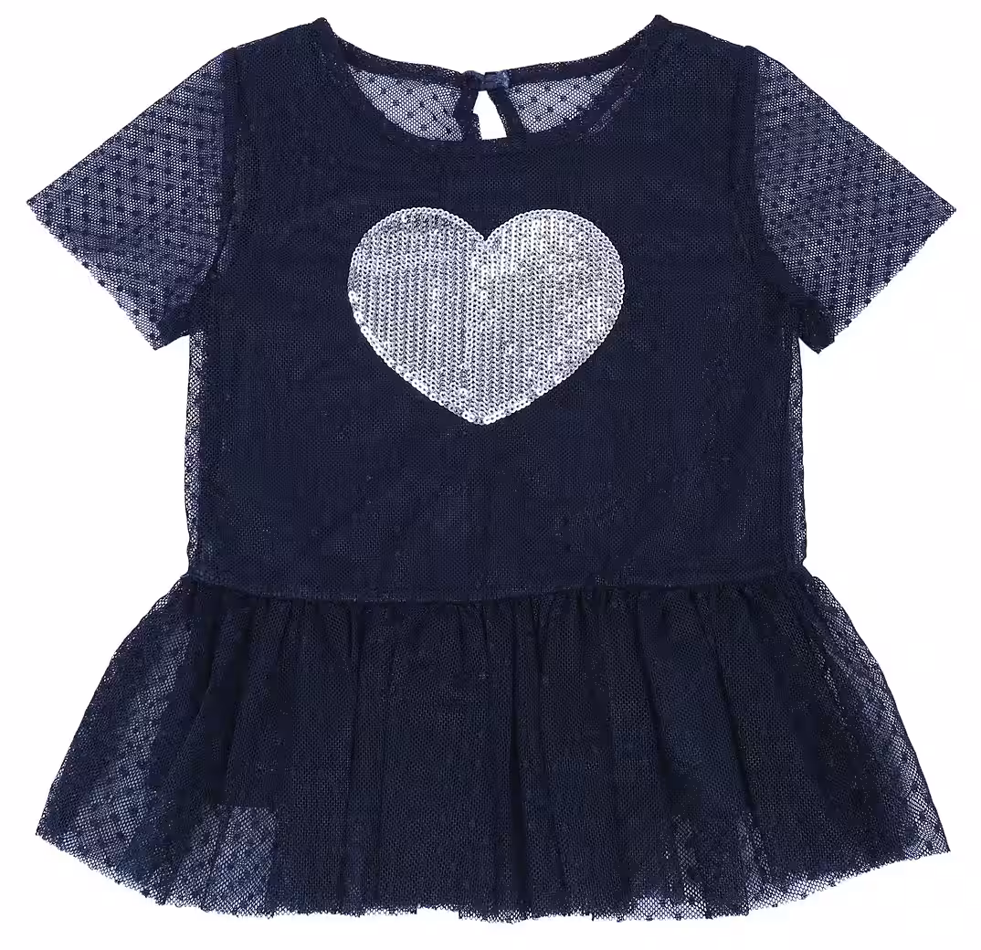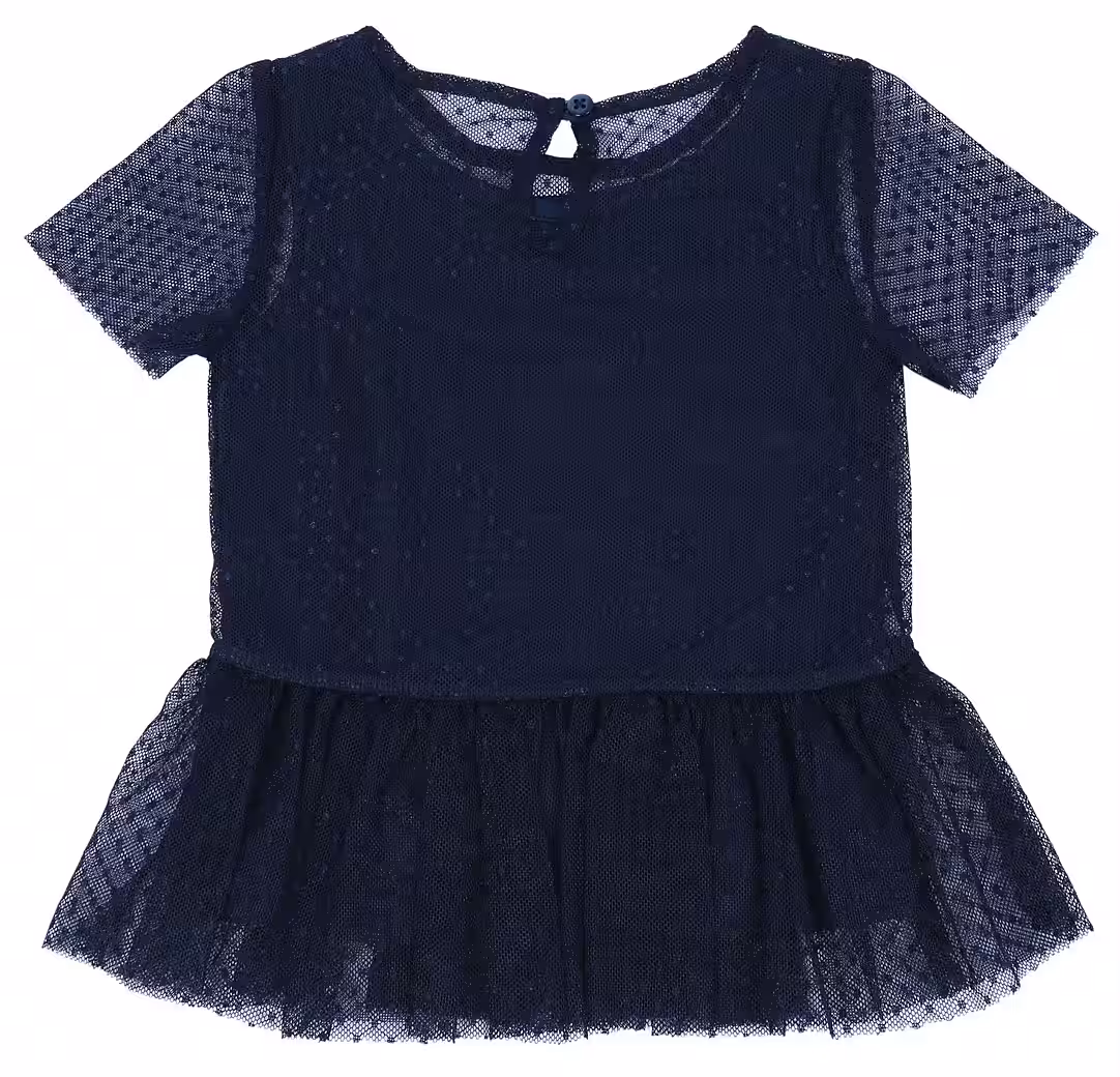 Short-sleeved blouse Dark blue tunic with ruffle 18-24 months