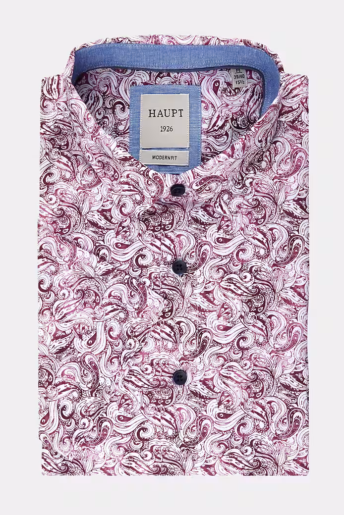 This modern-fit cotton men’s shirt with a dark red print guarantees maximum comfort thanks to its 100% cotton. The Haupt brand stands for high-quality clothing, and the short-sleeved design creates a modern look. Perfect for any occasion.