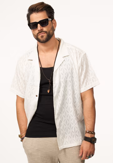 - Whether worn open over a T-shirt or tank top for a casual look or closed for an elegant touch, this shirt adapts to your style.