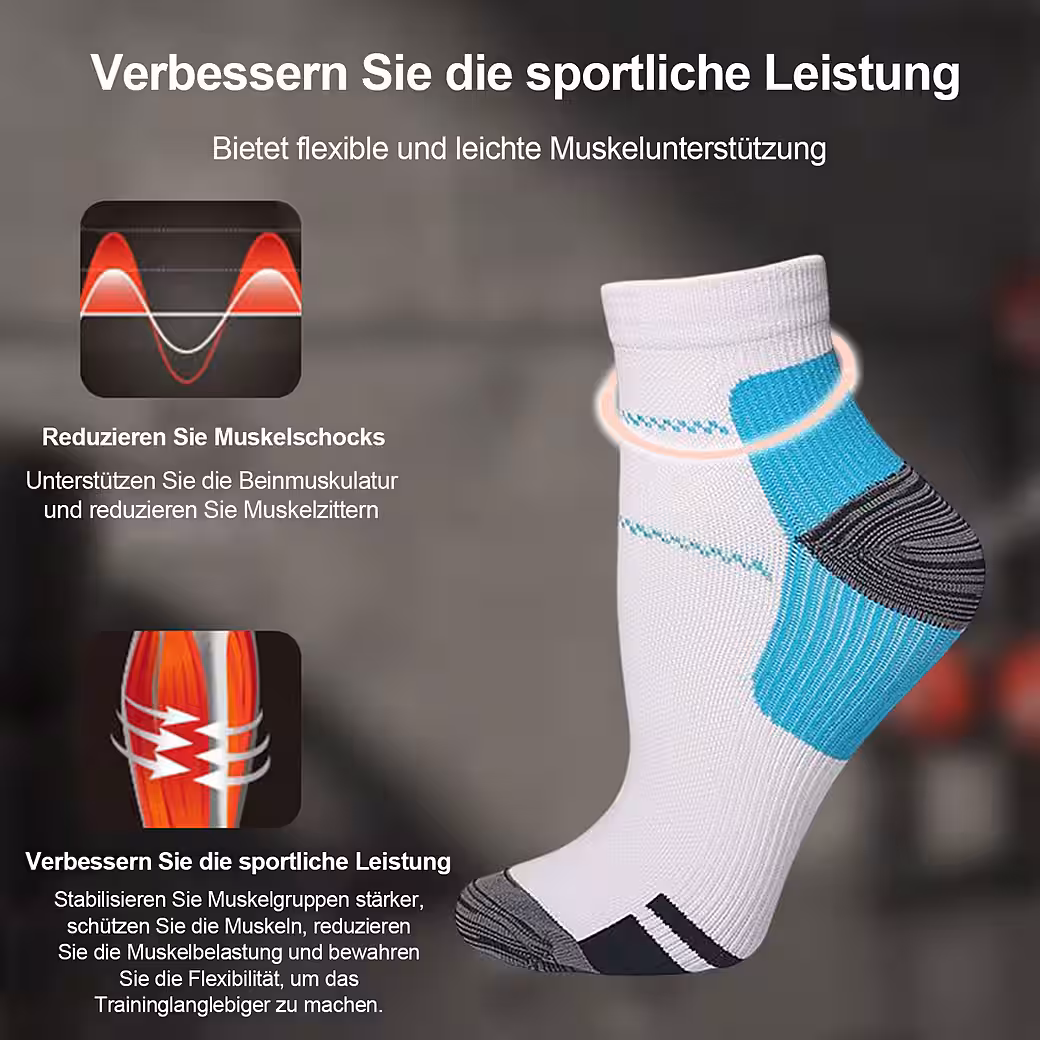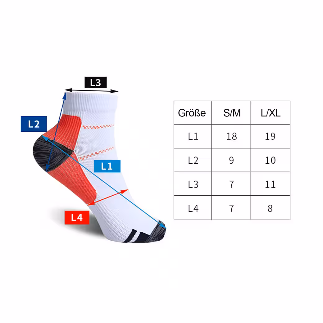 With a compression pressure of 15–20 mmHg, the socks promote blood circulation, increase responsiveness and help reduce fatigue. Perfect for runners, cyclists, fitness fans or anyone standing or traveling for a long time – more performance with less energy consumption.