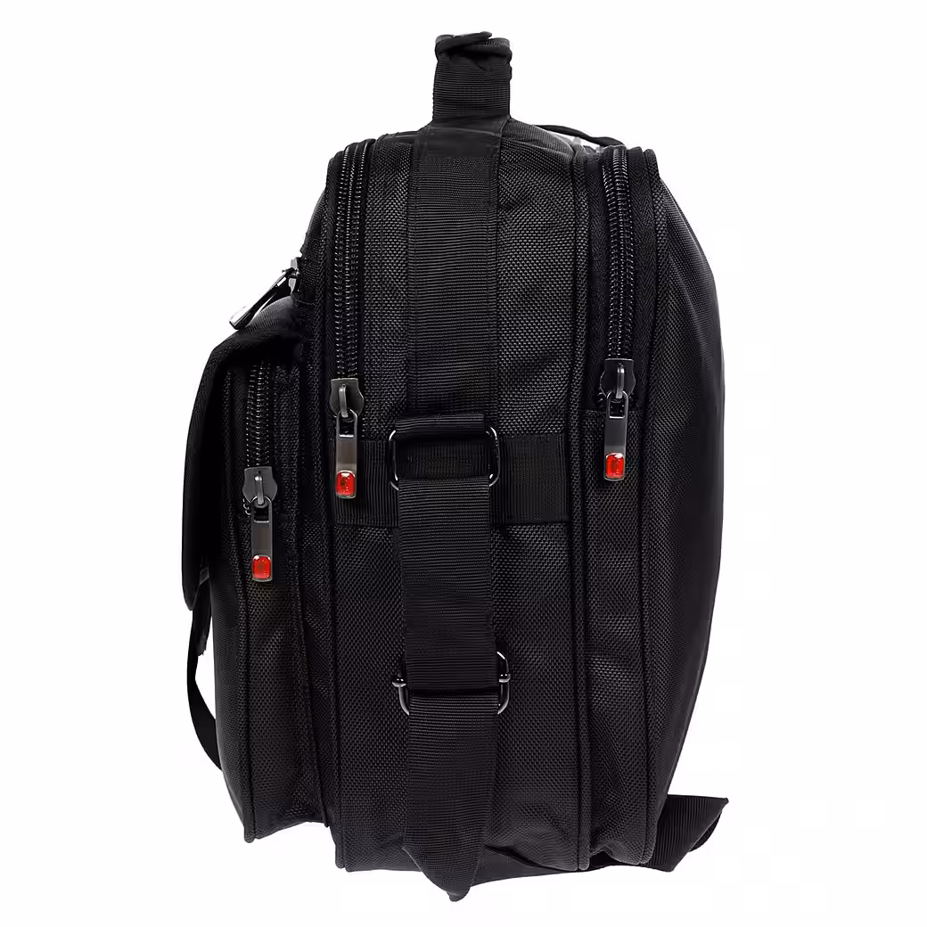 - Large DIN A4 main compartment, two front compartments with rollover