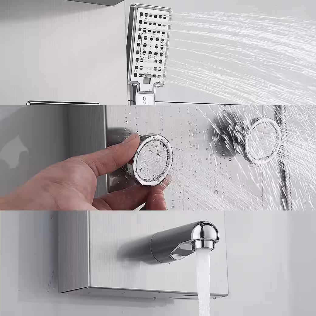 The surface of the shower panel is made of brushed stainless steel with a stylish look. The material is extremely corrosion-resistant and its metallic shine is retained for a long time.