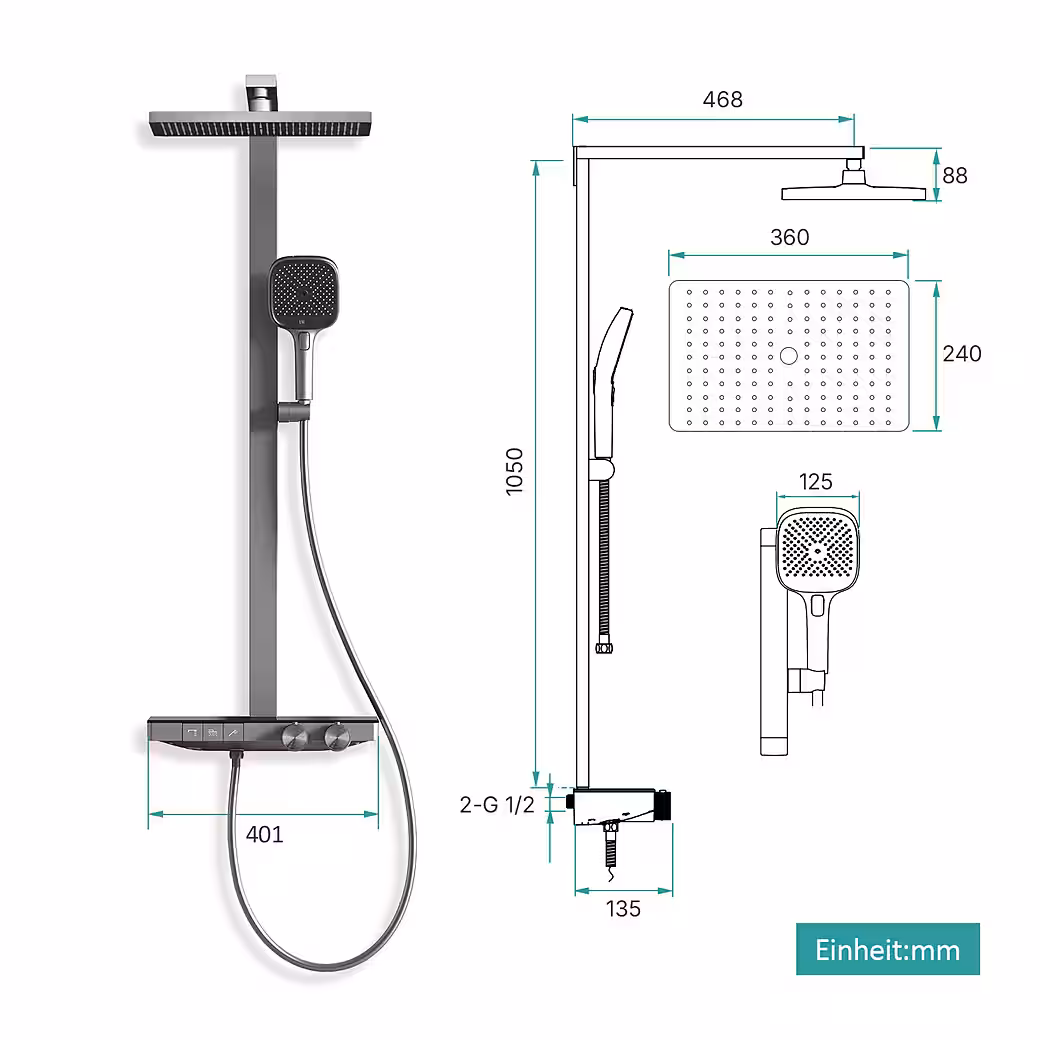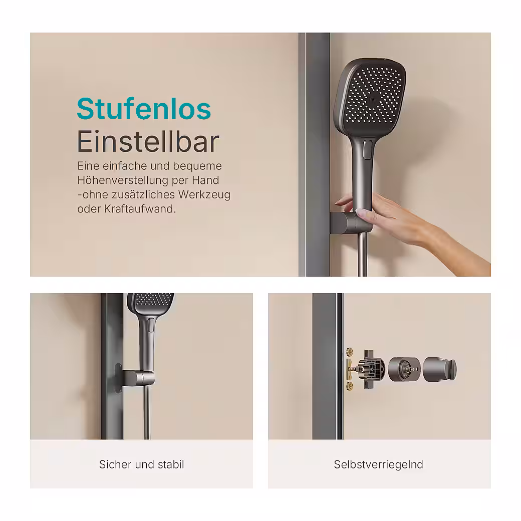 • Thanks to the solid brass casting, the shower system remains corrosion-resistant and durable – perfect for long-term use.