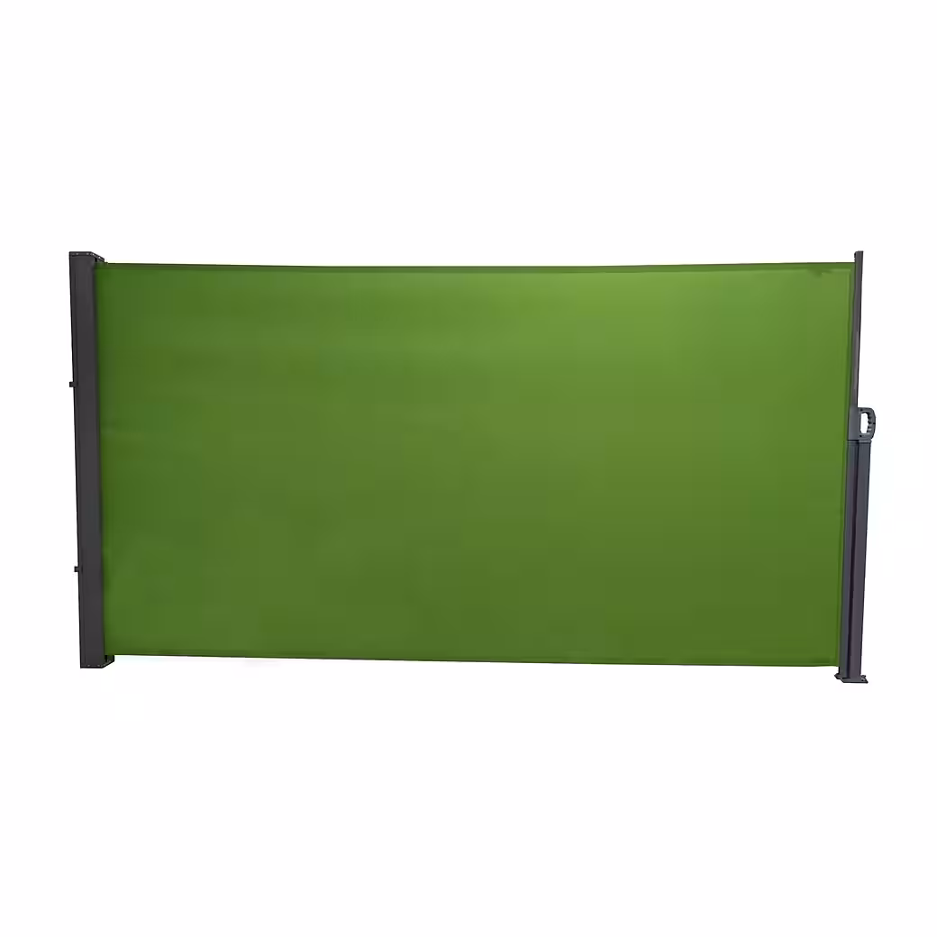 - Solid-color side awning made of polyester