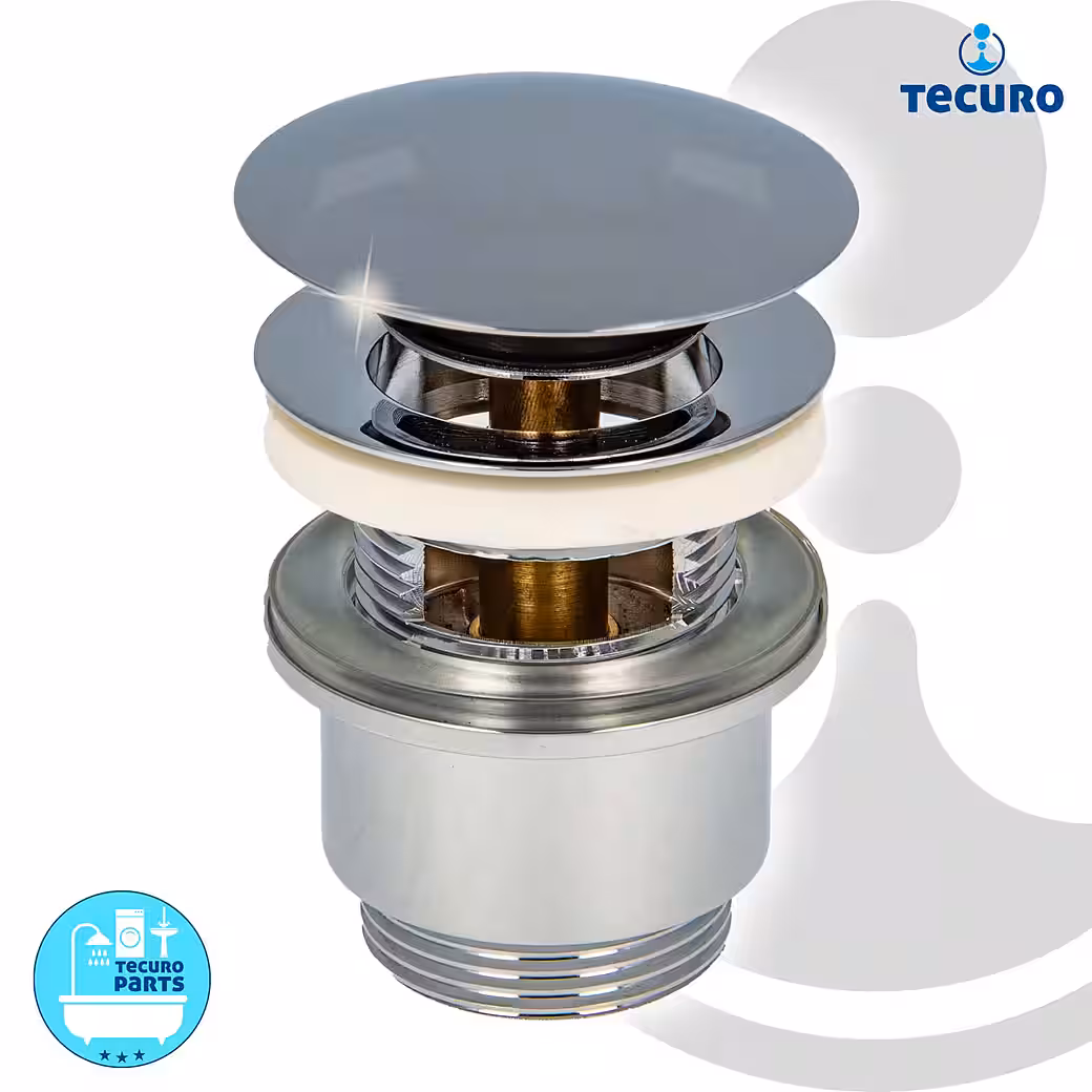• Drain valve // ​​High-quality and heavy-duty brass construction // For washbasins with overflow function // Easy opening and closing with light pressure