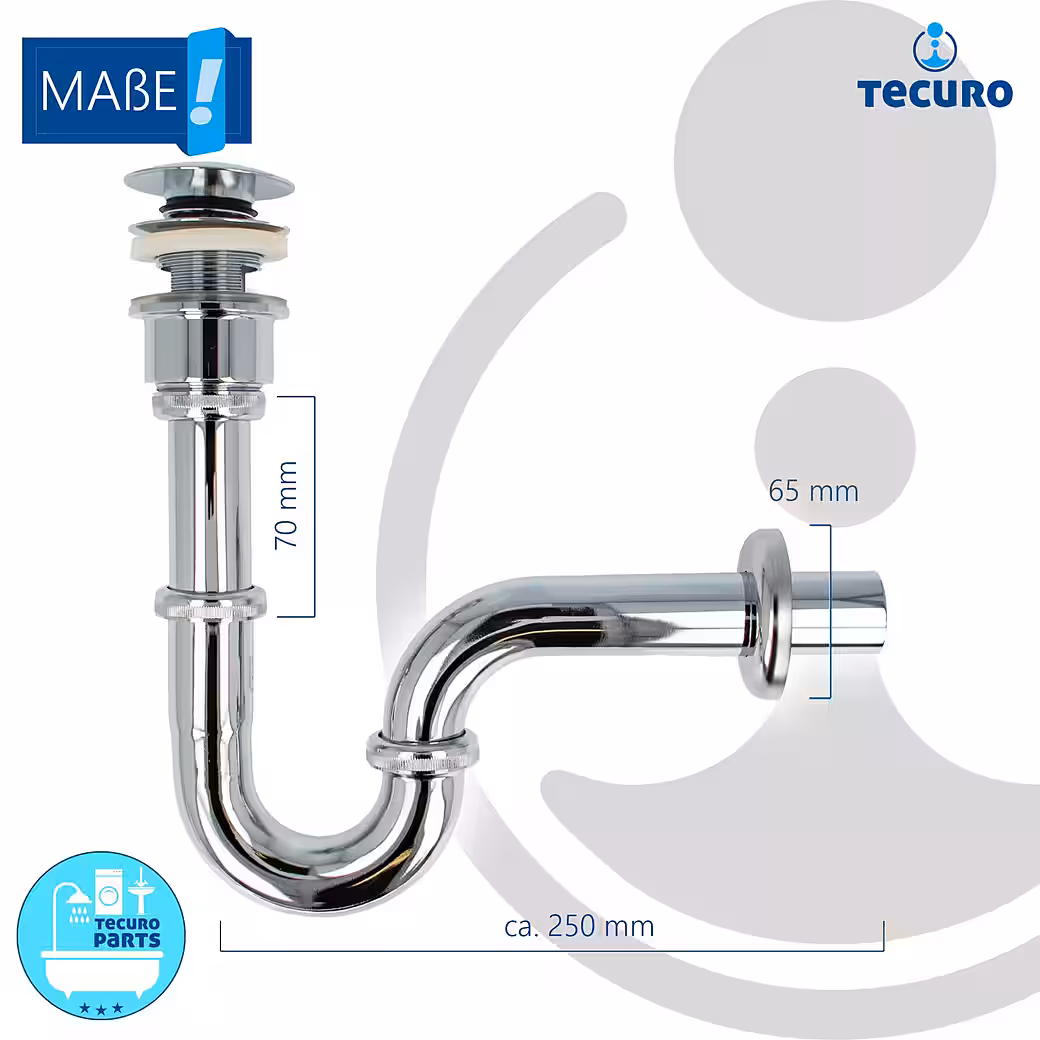 • tecuro Universal Siphon with Pop-Up Drain Valve, Chrome-Plated