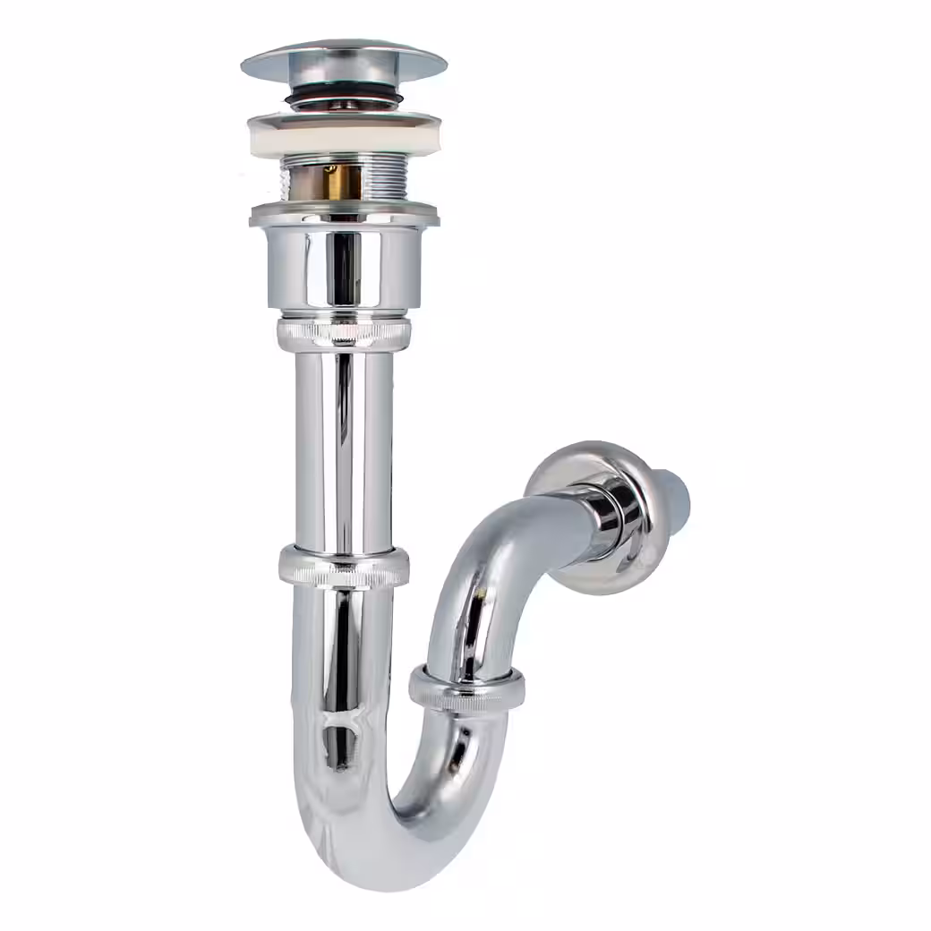 Siphon with pop-up drain valve, chrome-plated – set for washbasin