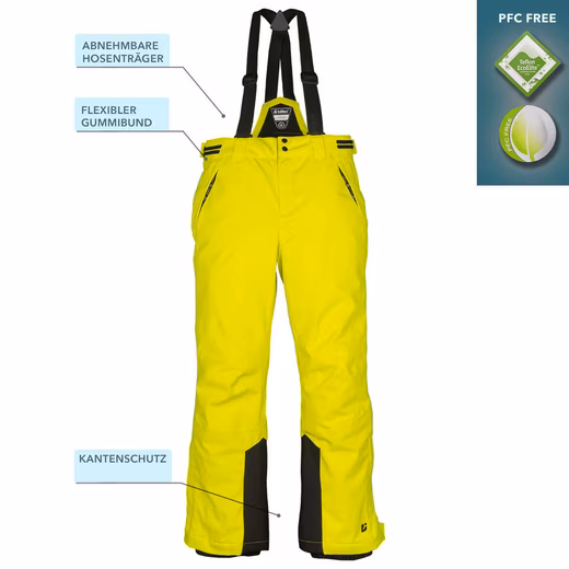 - Made of 100% polyester, the ski suit is 100% wind and waterproof thanks to welded seams and a water column of 10,000 mm