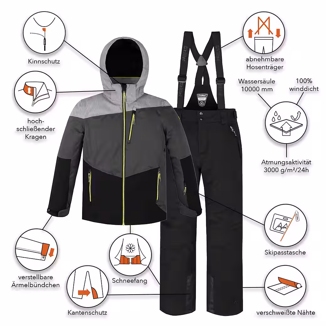 Children’s ski suit for boys with an environmentally friendly, waterproof coating