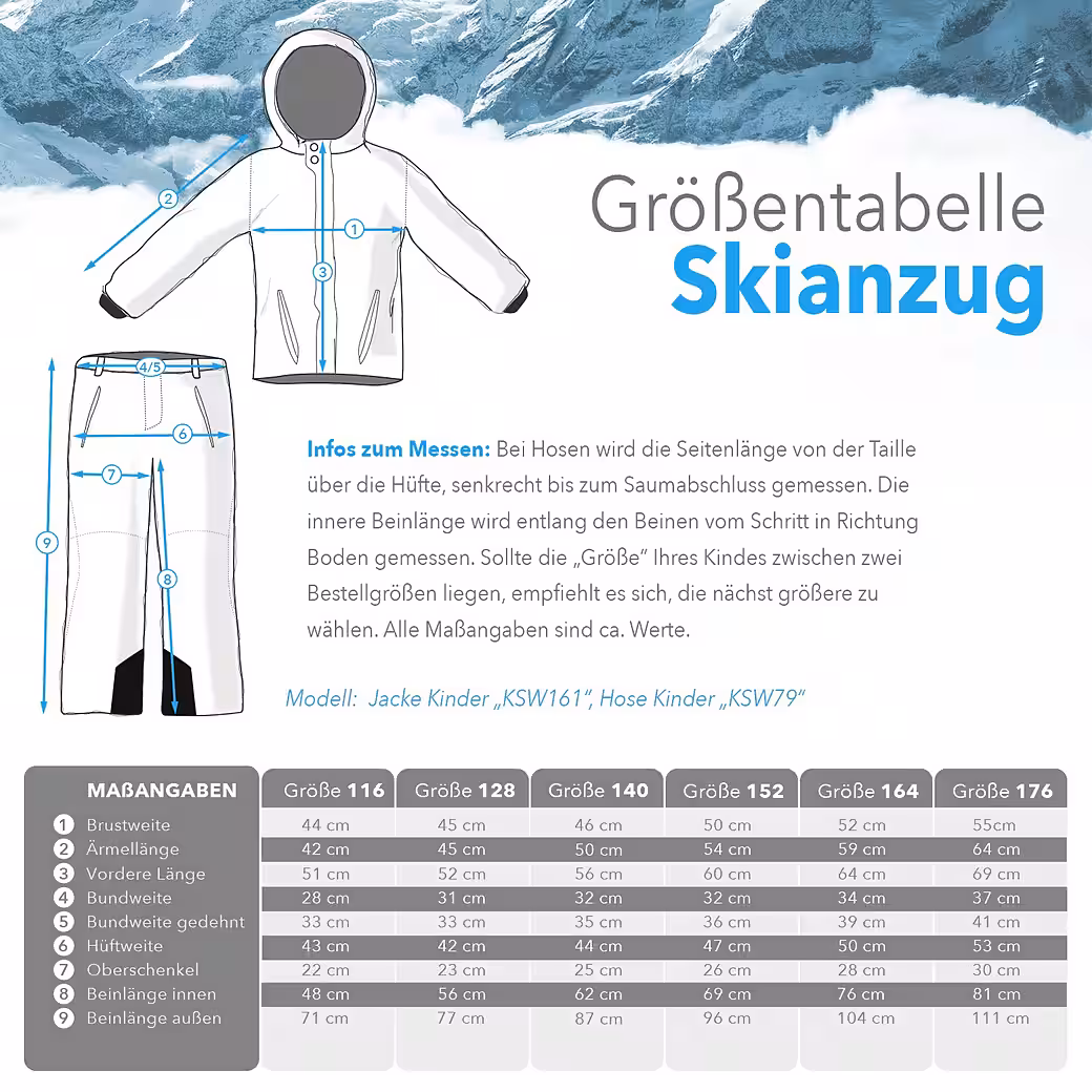 The two-part Children’s ski suit by killtec for boys in sporty design is wind and waterproof. This means that nothing stands in the way of having fun on the ski slopes. The environmentally friendly, PFC-free, air-permeable coating ensures a pleasant physical climate. The jacket with soft lining and temperature-regulating mesh insert keeps your child nice and warm. The Lycra cuffs on the adjustable cuffs and the non-slip snow catch prevent wind and cold from penetrating. The hood with a cut umbrella can be adjusted with an elastic band. A drawstring for width regulation is also integrated into the hem of the jacket. The adjustable Velcro fastener on the waistband ensures a good fit for the trousers.