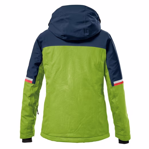 This two-piece children’s ski suit for girls guarantees stylish and warm fun during every snowball fight. Whether on the ski slopes or the local sledding hill, this windproof and waterproof ski suit from quality manufacturer killtec is the ideal choice. The PFC-free finish protects the environment.