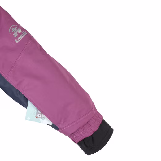 Very robust toddler one-piece suit with high heat retention Outer material “TASLAN” 100% Polyester Membrane technology DriDefense 8,000 mm water column and breathability 8,000 gr/m²/24 abrasion/cut-resistant OXFORD nylon: seat, knees, all-round trouser hem All seams welded Elastic bands in the waist area with belt loops Reflective 3M Scotchlite zipper – puller and piping Reflective 3M Scotchlite sections up to 350m Reflective