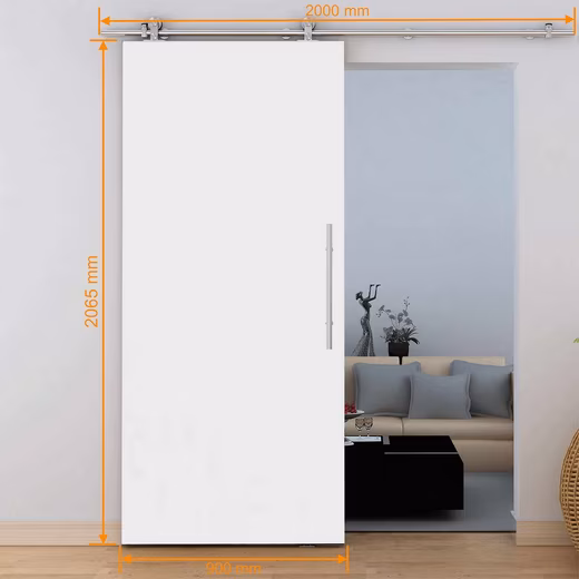 - Scope of delivery: 1 door leaf, 2 handles, carriage, running rail, stopper, floor guide, mounting material, assembly instructions