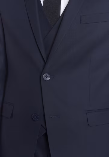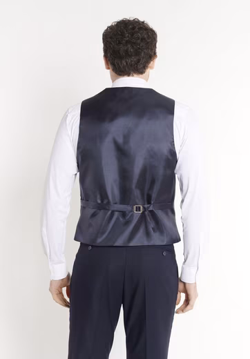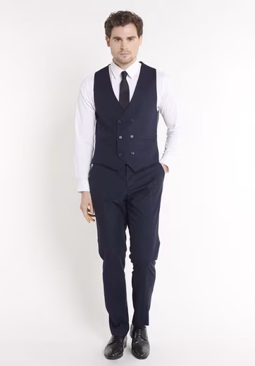 This elegant three-piece suit by Steffen Klein combines a modern cut with classic details. The combination of a slim-fit jacket with a light surface texture, a double-breasted waistcoat, and elegant, narrow-cut trousers gives the suit that certain something. The high-quality materials are comfortable to wear thanks to the stretch fabric. The modern two-button jacket has lightly padded shoulders for a formal silhouette, as well as two flap pockets, a welt pocket at chest height, and several inside pockets. In addition to slant pockets, the trousers feature two buttoned back pockets. The back of the elegant waistcoat is made of a high-quality, shiny lining, allowing for maximum mobility under the jacket. This three-piece suit is the perfect choice for special occasions such as weddings, christenings, Christmas, or New Year’s Eve. Depending on the occasion, the suit can also be worn without a waistcoat, for example, for business meetings or important appointments with a casual retro chic.