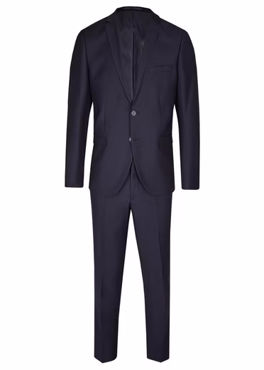 Steffen Klein’s modern, two-piece slim-fit suit in navy blue combines high-quality materials with an elegant cut. This classic men’s suit is the perfect choice for business meetings or formal occasions. The slim-fitting jacket with outside and inside pockets and the obligatory breast pocket for a pocket square creates a sleek silhouette. Two back vents ensure a perfect fit and exceptional comfort. The suit trousers with a button-down back pocket, pressed pleats, and belt loops complete the casual, modern-fit look. A shirt and tie create a formal yet sophisticated look. Paired with a T-shirt, it adds a sporty touch for a casual-chic look. This men’s suit is the perfect choice for formal occasions such as weddings, baptisms, Christmas, New Year’s Eve, and graduation parties. The classic men’s suit is the perfect companion for many occasions.