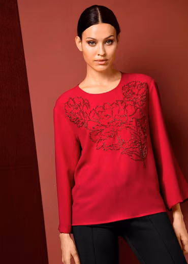 You’ll find various styles for a wide variety of occasions here in our online shop. How about this slip-on blouse from Alba Moda, for example? The pearls are a particular highlight. It features a round neckline and an A-line cut. Long sleeves with a straight hem. Made from easy-care material. Treat yourself to this slip-on blouse from Alba Moda – simply order it now in our shop!