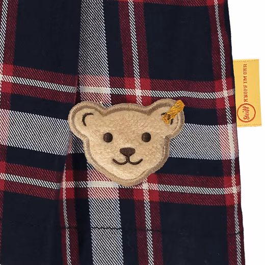 Our skirt made of checked, lightweight cotton will make the hearts of fashion-conscious little explorers beat faster. Equipped with a lining, the skirt is always opaque. Delicate pleats at the waistband add cute volume and movement. A soft, adjustable elastic waistband gives active girls freedom of movement. As a special touch, a fluffy Steiff teddy bear head is included! Let’s go out in style, whether for everyday life or special occasions!