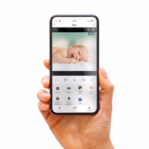 Safe and reliable:Â Connect securely via Wi-Fi or mobile internet. The encrypted connection protects your baby from unauthorized access.