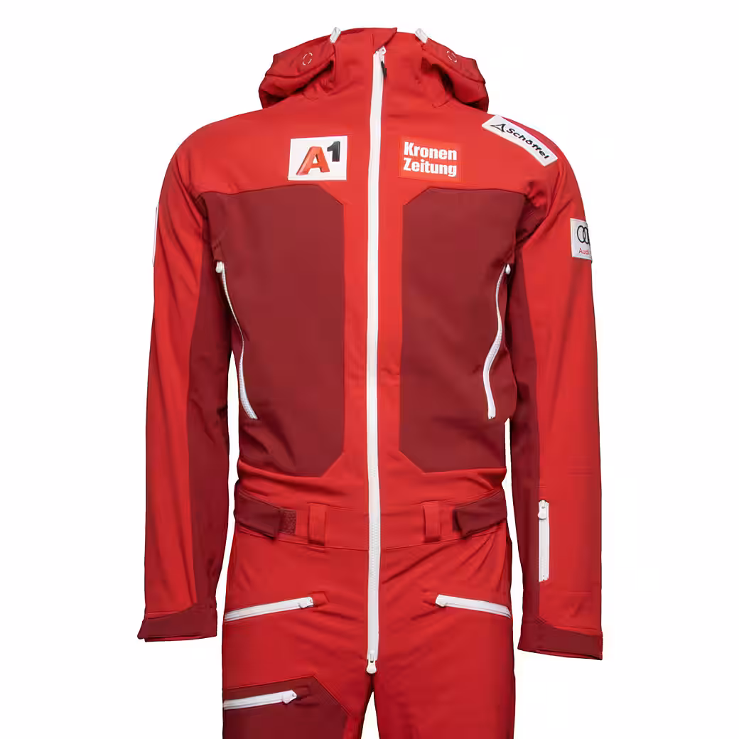 The Schöffel ÖSV RT Ski Overall for men is a high-performance ski overall that offers the performance and style to compete at the highest level. It reliably keeps out rain and snow, while water-repellent zippers ensure that the contents of the bags remain dry. These offer enough space for important little things that always remain at hand. The loosely cut design ensures optimal freedom of movement and the original ÖSV logos and sponsor badges let everyone know that you are a fan of the Austrian ski team. The overalls enable a pleasant, dry body climate and are perfect for long days in the snow.