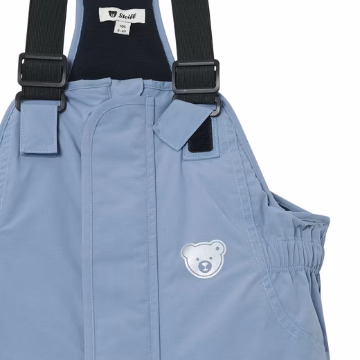 Well-protected and stylish on the go – these blue ski pants are the perfect companion for adventurous winter girls. Thanks to an ecological BIONIC-FINISH®ECO waterproofing without plasticizers, the outer material is windproof, waterproof, and breathable. With a water column of 8000 mm, these snow pants are ideal for exuberant romping in the snow. Adjustable straps and a zipper with hook-and-loop fastener ensure a perfect fit and easy dressing. Contrasting details and fine piping add subtle accents. The reflective Steiff teddy bear motif on the chest provides additional visibility and security. Ready for any snow adventure!