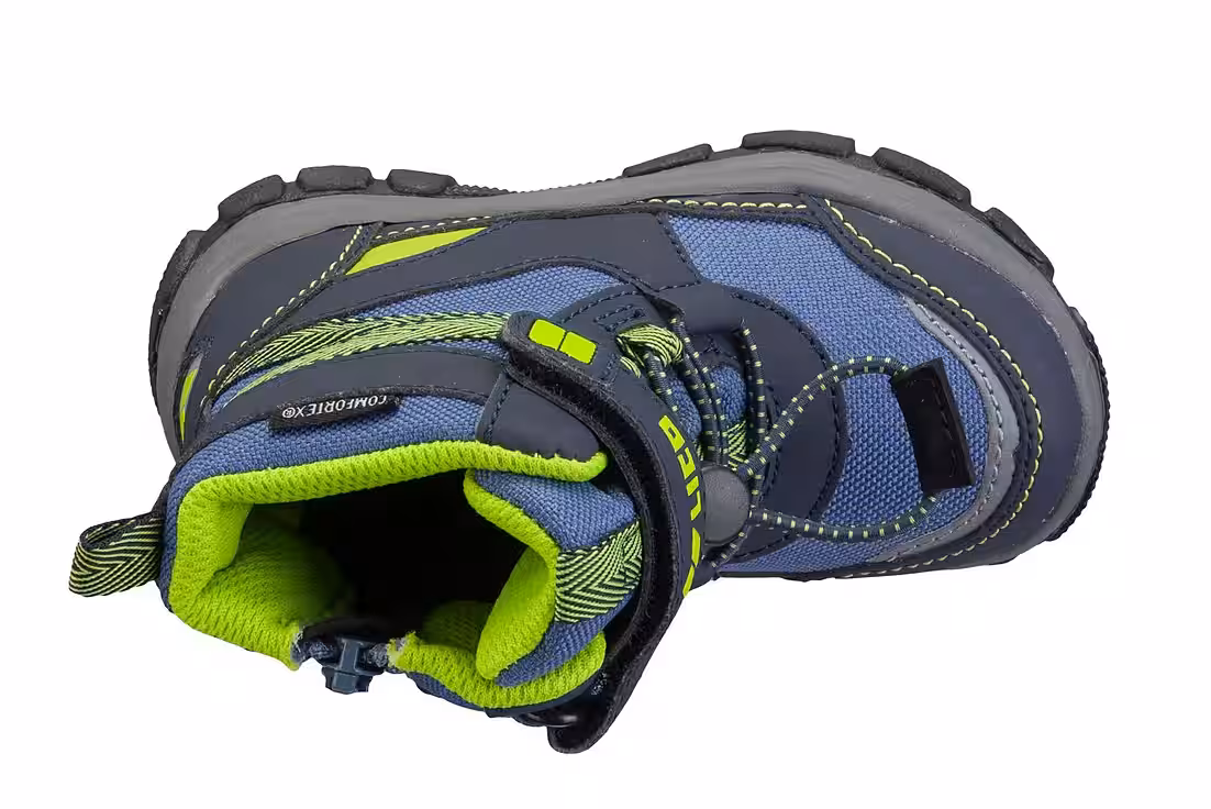 Classic winter boot Crubie VS by Lico for toddlers The upper is made of a mix of nylon with synthetic trimmings. The warm lining (100% polyester) and the lined insole keep the feet cozy and warm. Thanks to the Comfortex climate membrane, the winter boot is waterproof and breathable at the same time, making it perfect for wet and colder days. The elastic laces with the Velcro fastener ensure an optimal fit. The flexible and non-slip rubber outsole rounds off the successful features of the winter boot.