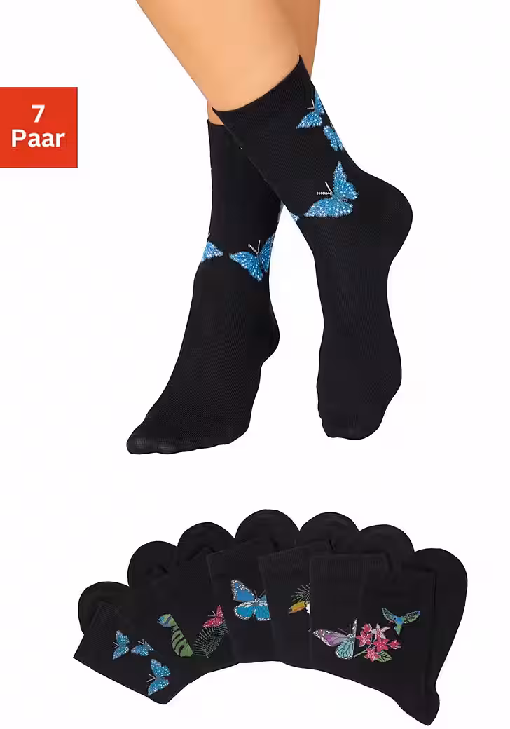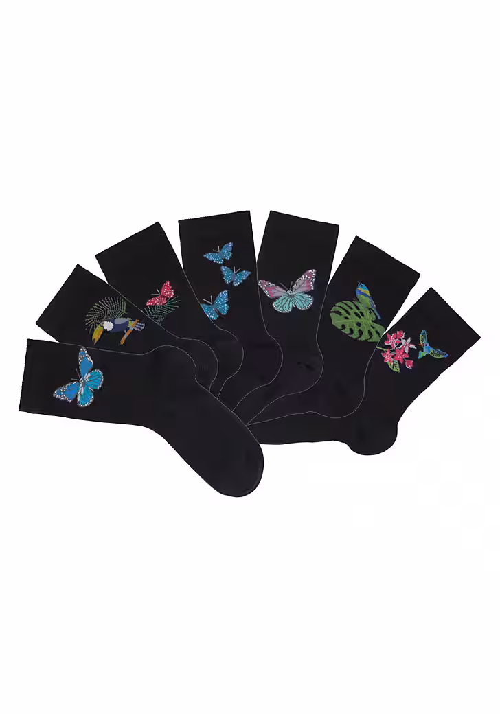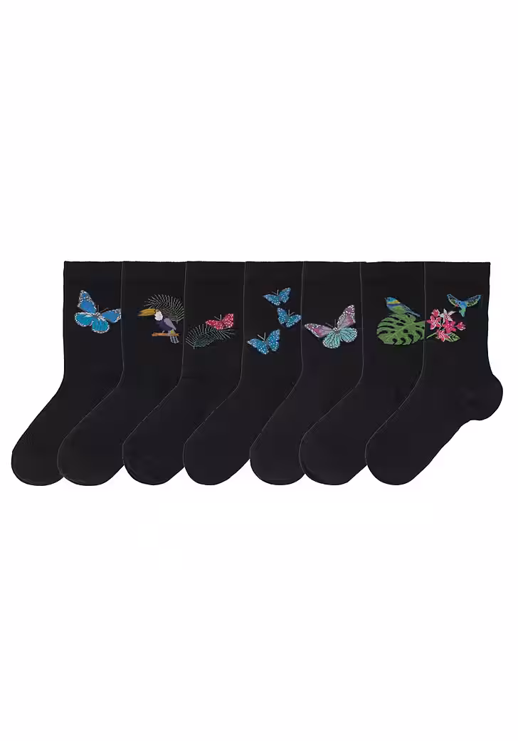 Socks (pack, 7-pair) with butterfly and bird motifs