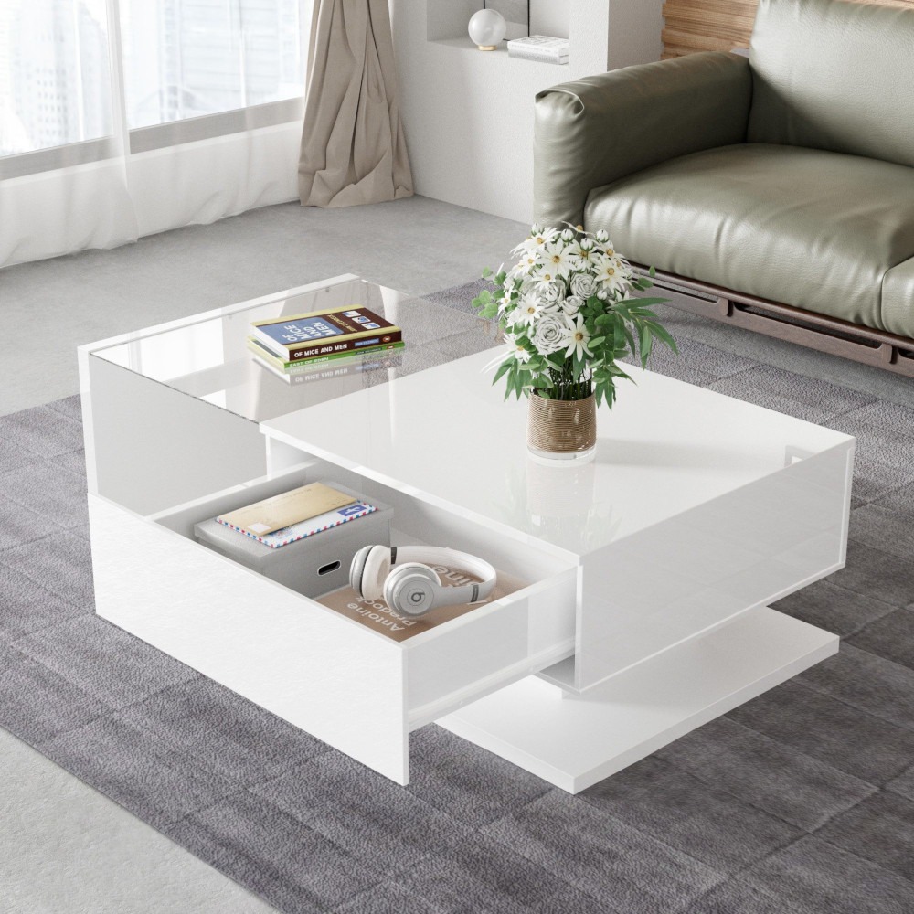 Coffee table with drawer and glass table top