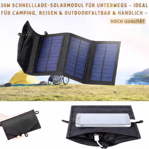 Experience limitless freedom with the SolarMate 30 from Goldstern Tech – the ultra-lightweight, foldable 20-watt solar panel with 3 powerful solar panels that reliably provides you with energy on the go. Whether hiking, camping or in an emergency – this panel ensures independence from the power grid.